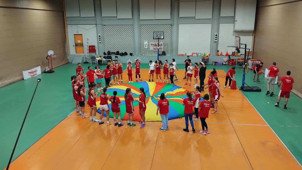 Οι αθλήτριες του ΤΖΑΜΠΟΛ ΑΓΑΠΗΣ και οι αθλήτριες των αγωνιστικών τμημάτων καλαθοσφαίρισης του ΟΛΥΜΠΙΑΚΟΥ Σ.Φ.Π. συναντήθηκαν στο ίδιο γήπεδο, μοιράστηκαν κοινές ασκήσεις, πάσες, χαμόγελα και συγκίνηση, στέλνοντας το πιο δυνατό μήνυμα ότι ο αθλητισμός ενώνει όλα τα παιδιά.