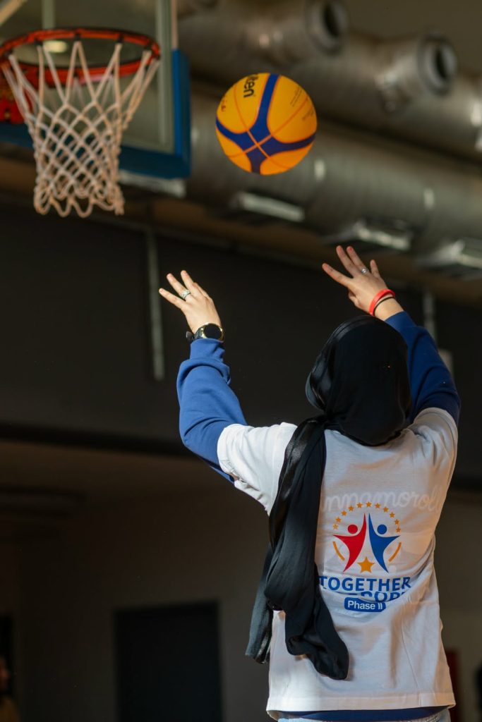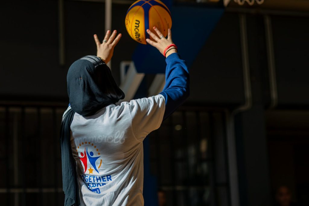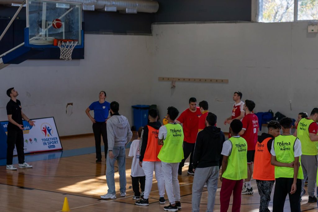 Στη συνέχεια, το γήπεδο γέμισε με μπάσκετ, διαδραστικά παιχνίδια και δράσεις συνεκπαίδευσης, όπου παιδιά της Ειδικής Καλαθοσφαιρικής Αγωγής, παιδιά τυπικής ανάπτυξης και παιδιά τρίτων χωρών έπαιξαν μαζί, χωρίς διαχωρισμούς, με κοινό σημείο τη χαρά της συμμετοχής.