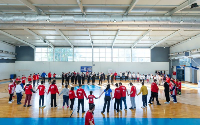 Στη συνέχεια, το γήπεδο γέμισε με μπάσκετ, διαδραστικά παιχνίδια και δράσεις συνεκπαίδευσης, όπου παιδιά της Ειδικής Καλαθοσφαιρικής Αγωγής, παιδιά τυπικής ανάπτυξης και παιδιά τρίτων χωρών έπαιξαν μαζί, χωρίς διαχωρισμούς, με κοινό σημείο τη χαρά της συμμετοχής.