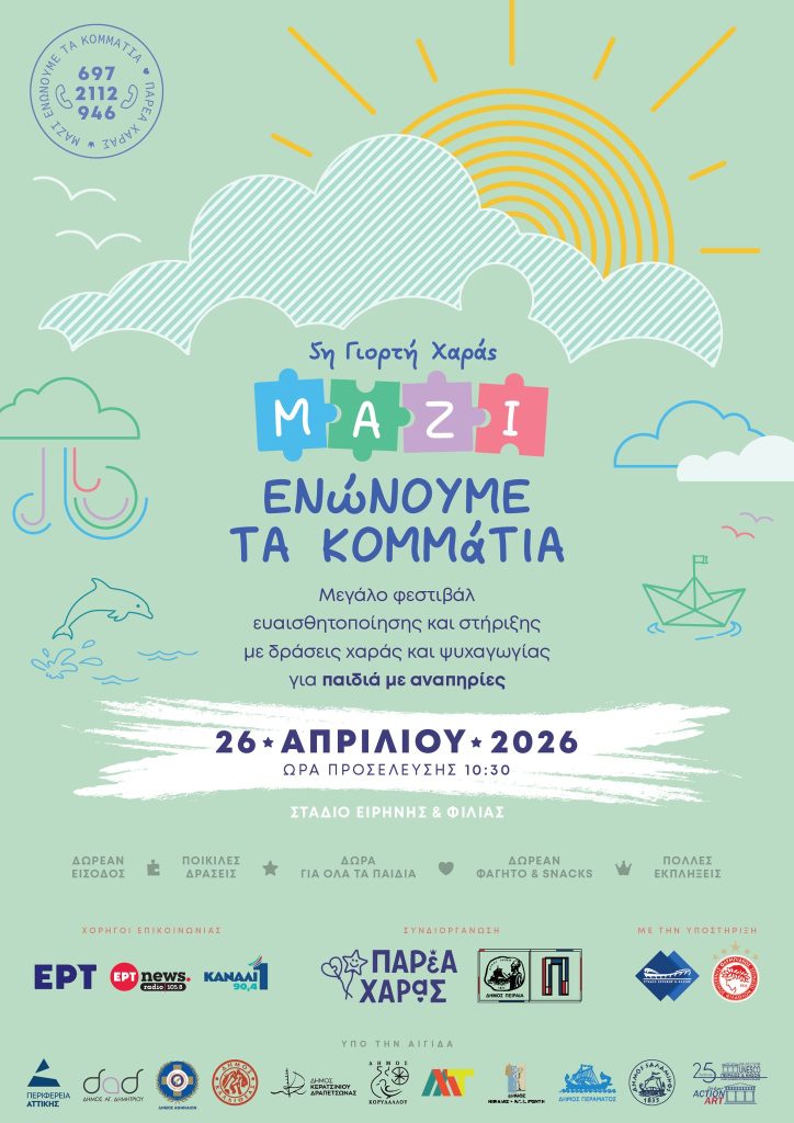Στη συνέχεια, το μεσημέρι, βρεθήκαμε και πάλι στο Στάδιο Ειρήνης και Φιλίας, στη γιορτή του ΚΔΑΠ «Παρέα Χαράς», με το όμορφο μήνυμα: «Μαζί Ενώνουμε Τα Κομμάτια»
