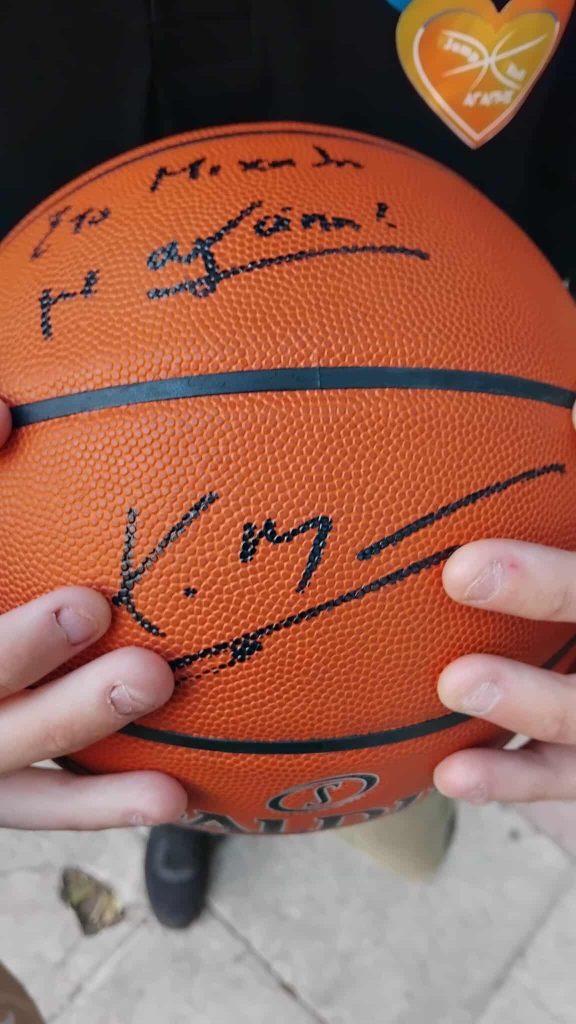 Συγκινητική στιγμή: το δώρο μιας μπάλας μπάσκετ στον Μιχάλη—την έμπνευσή μας.